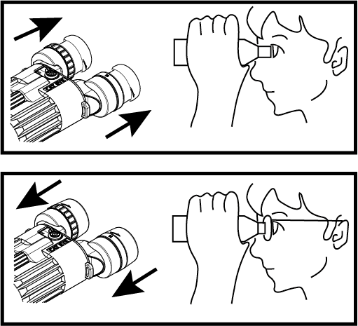 眼幅調整を行うため、両目で接眼レンズからのぞきながら、静かに開閉します。