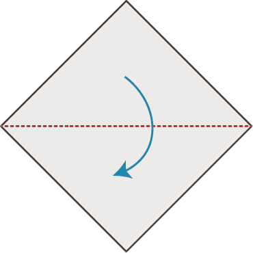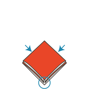 1.裏面を表にし、三角を作るように点線部分に折り目をつけます。