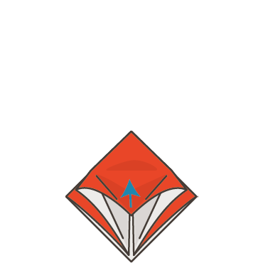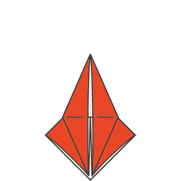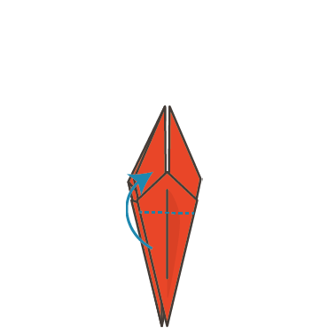 18.点線の部分を持って羽根に、⚪︎印の部分を内側に織り込んでくちばしを作りましょう。
