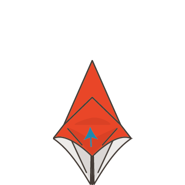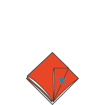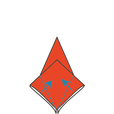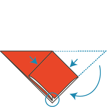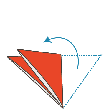 16.上部先端とピッタリ重なるように下側を矢印の方向に動かします。片側も同じように折りたたみます。