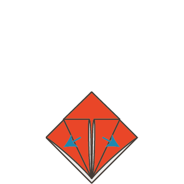 15.両側を同じように折りたたみます。次は側面から矢印の方向に開きます。